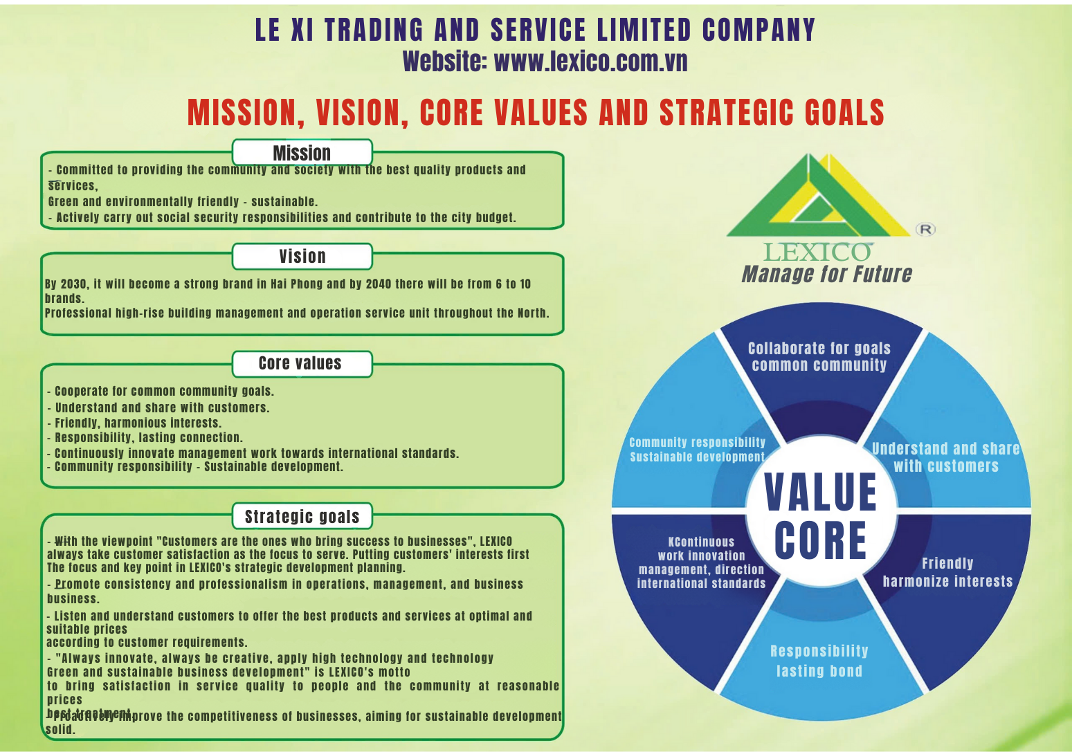 Lexico has consulted, operated, and consulted to build buildings into a civilized, courteous, united, full of humanity and high-efficiency community.